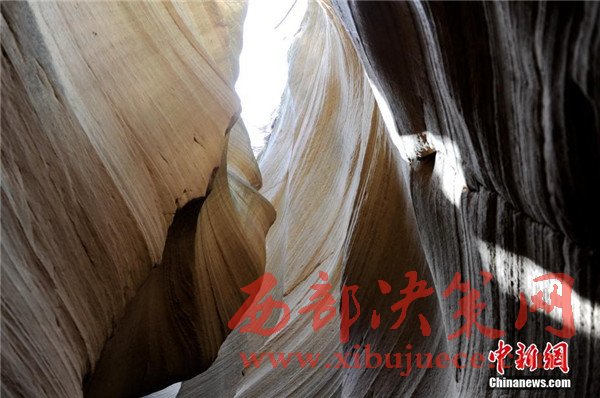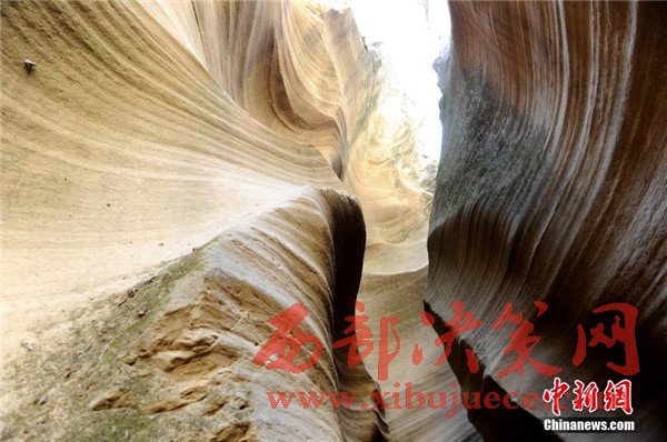 位于陜西省甘泉縣雨岔村的峽谷,是陜北黃土高原上的地質(zhì)奇觀,峽谷內(nèi)壁凹凸不平、線條流暢,走進(jìn)峽谷,峽壁上的線條如波浪從身邊劃過,最窄的地方只有一個(gè)人側(cè)著身子方可過去,其迷人之處與美國羚羊峽谷相媲美。