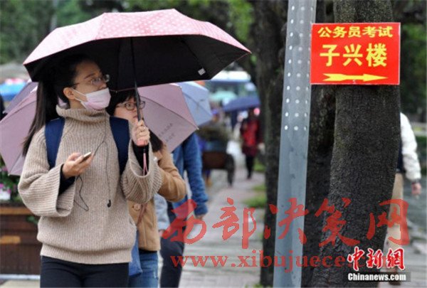資料圖:2016年11月27日,11月27日,福州一公務(wù)員招考筆試考點,考生在尋找考場。