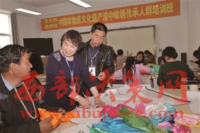 喬應菊在堆繡傳承人群培訓班上向學員們無私傳授。