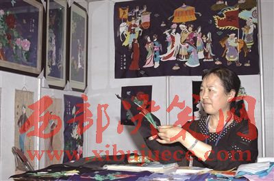給堆繡圖中的各種人物點睛描眉。