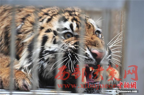 4月5日,關(guān)在籠子里的老虎。當(dāng)日,云南野生動(dòng)物園6頭老虎從繁育中心搬入散養(yǎng)區(qū),經(jīng)過一段時(shí)間的觀察適應(yīng)期后,就可以與游客見面。據(jù)工作人員介紹,在繁育中心人工飼養(yǎng)長大的老虎到繁殖年齡后,就會(huì)搬到有更大活動(dòng)空間的散養(yǎng)區(qū)。云南野生動(dòng)物園是中國十大老虎繁殖基地之一。