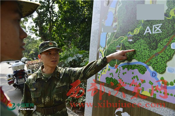 訓(xùn)導(dǎo)員研究山林地形。