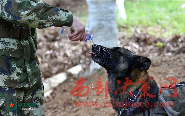 “好樣的,晚上給你加菜!”下午5時10分,終于在一處枯草前停了下來,訓(xùn)導(dǎo)員上前翻開遮蓋物,臟物、衣服、手套等一包東西出現(xiàn)眼前,任務(wù)圓滿完成!據(jù)悉,“道海”從2012年服役以來,先后出色完成了緝私、緝毒、軍警聯(lián)勤等20多項機(jī)動任務(wù),多次榮立戰(zhàn)功,受到上級嘉獎表揚,是名副其實的“功勛犬”。