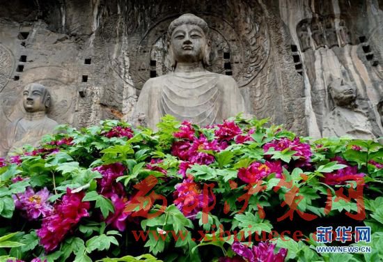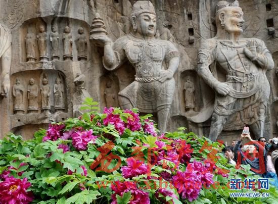 目前正值洛陽(yáng)牡丹的盛花期,洛陽(yáng)龍門(mén)石窟景區(qū)內(nèi)的近萬(wàn)株牡丹爭(zhēng)奇斗艷,與古老的石刻佛像共同構(gòu)成獨(dú)特的風(fēng)景。