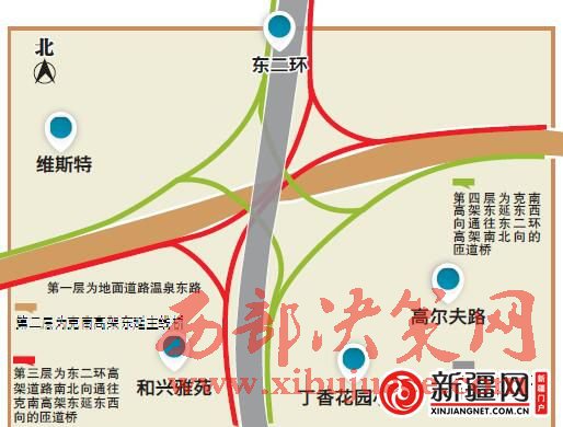 5月22日起,烏魯木齊克南高架東延二期工程圍蔽施工。其中工程將建一座全互通的立交,屆時將與東二環(huán)高架形成五層交互式立交。