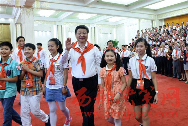 2015年6月1日,習(xí)近平在北京人民大會(huì)堂親切會(huì)見中國(guó)少年先鋒隊(duì)第七次全國(guó)代表大會(huì)全體代表。