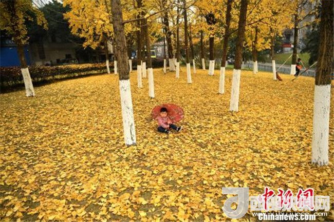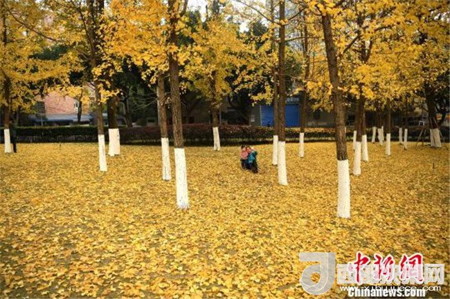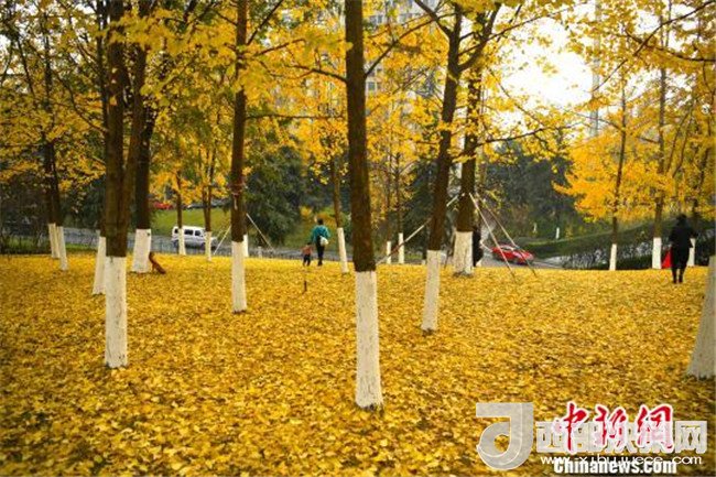 12月18日,重慶街邊的銀杏樹進(jìn)入掉葉季,大樹底下鋪滿了一層層金燦燦的銀杏葉,吸引了不少市民前來拍照留念。