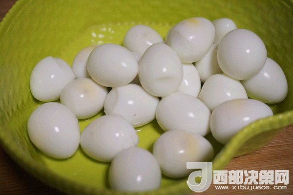 1、鵪鶉蛋放在冷水中煮,水開后煮8分鐘。
