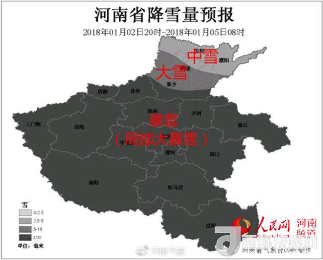 人民網(wǎng)鄭州1月2日電(戚藝芳)瑞雪兆豐年,河南將迎2018年首場(chǎng)強(qiáng)降雪。據(jù)河南省氣象臺(tái)最新消息,從2日夜間河南將開(kāi)啟暴雪模式!-12℃+5級(jí)大風(fēng)+25cm積雪,可謂是入冬以來(lái)范圍最大、強(qiáng)度最強(qiáng)的降雪過(guò)程。