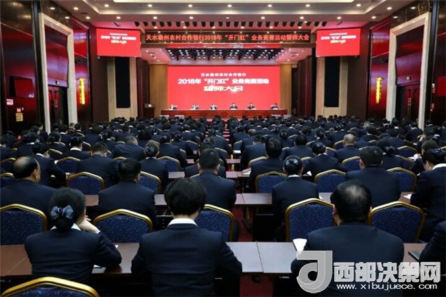 西部決策網(wǎng)-西部大開發(fā)訊(帥華鋒 通訊員 馬存福 漆曉明)1月2日上午8時,天水賓館會議中心燈火通明、濟(jì)濟(jì)一堂,醒目的橫幅,激昂的誓言,吹響了天水秦州農(nóng)村合作銀行2018年“開門紅”業(yè)務(wù)競賽活動戰(zhàn)斗的號角,擂響了全員沖鋒的戰(zhàn)鼓,拉開了決戰(zhàn)“開門紅”的大幕。
