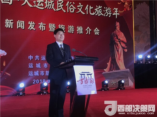 西部決策網(wǎng)-西部大開(kāi)發(fā)訊(宋丹)1月9日,從山西運(yùn)城市在陜西西安市舉辦的2018“古中國(guó)·大運(yùn)城”民俗文化旅游年新聞發(fā)布暨旅游推介會(huì)獲悉,以“古中國(guó)·大運(yùn)城”為主題的山西運(yùn)城市2018民俗文化旅游年系列活動(dòng)全面啟動(dòng)。山西運(yùn)城市委常委、宣傳部長(zhǎng)王志峰出席新聞發(fā)布推介會(huì)并致辭。運(yùn)城市人民政府副市長(zhǎng)陳竹琴出席發(fā)布會(huì)。