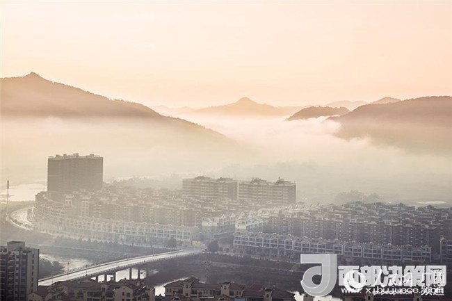 1月18日電1月18日,廣西上思縣城出現(xiàn)了平流霧奇觀,在朝陽渲染下的金黃色霧氣在低空緩緩地流動(dòng),樓房在霧氣中若隱若現(xiàn),宛若仙境。