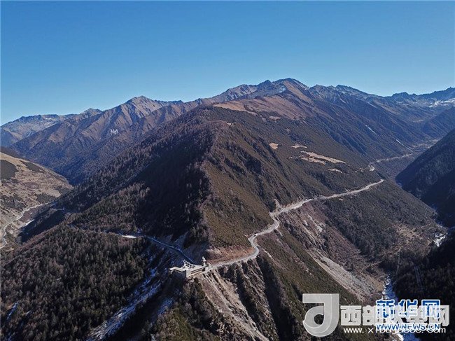 在四川省阿壩藏族羌族自治州小金縣,汽車行駛在山腰的公路上(1月24日攝)。記者 才揚(yáng) 攝