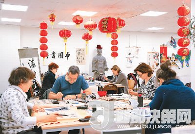 在比利時(shí)布魯塞爾的孔子學(xué)院,學(xué)員們練習(xí)中國書法。新華社記者葉平凡攝