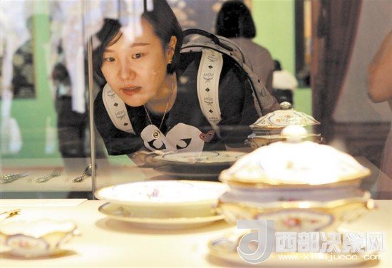 俄羅斯彼得霍夫國(guó)家博物館藏文物特展在成都開(kāi)展,圖為觀眾欣賞精美的皇家用品 本報(bào)資料圖片