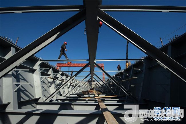 正在生產(chǎn)中的重達(dá)1900噸的港珠澳大橋巨型組合梁(2013年11月30日攝)。記者 程敏 攝