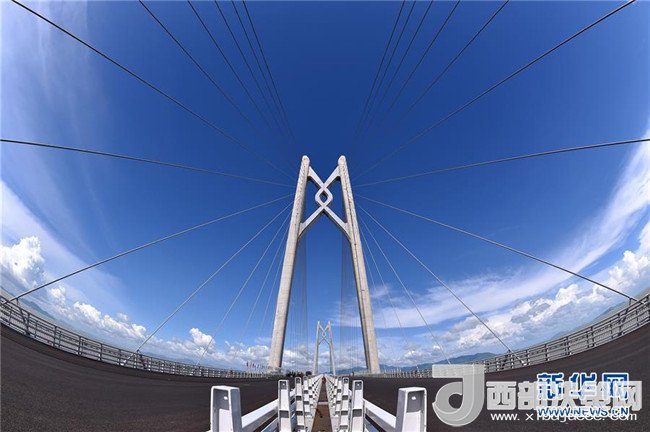 港珠澳大橋上的“中國結(jié)”造型橋塔(2017年6月6日攝)。記者 梁旭 攝