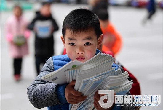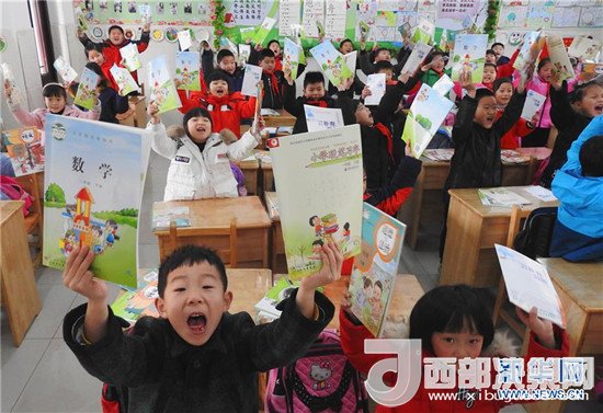 2月25日,江蘇省無錫市揚(yáng)名中心小學(xué)的學(xué)生們手捧剛剛領(lǐng)取的新課本。(湯毅 攝)