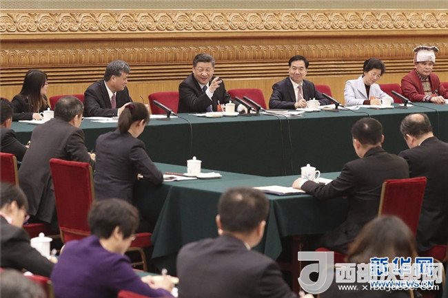 3月7日,中共中央總書記、國家主席、中央軍委主席習(xí)近平參加十三屆全國人大一次會議廣東代表團的審議。 新華社發(fā)(盛佳鵬 攝)