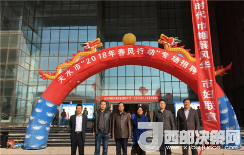 西部決策網(wǎng)——西部大開(kāi)發(fā)訊(帥華鋒 通訊員 馬存福 漆小燕)為全面貫徹黨的十九大精神,助推鄉(xiāng)村振興戰(zhàn)略,打好脫貧攻堅(jiān)戰(zhàn),由天水市人社局、市扶貧辦、市總工會(huì)、團(tuán)市委、市婦聯(lián)聯(lián)合舉辦的天水市“2018年春風(fēng)行動(dòng)”專場(chǎng)招聘會(huì)于3月11日在天水市人力資源市場(chǎng)舉行。