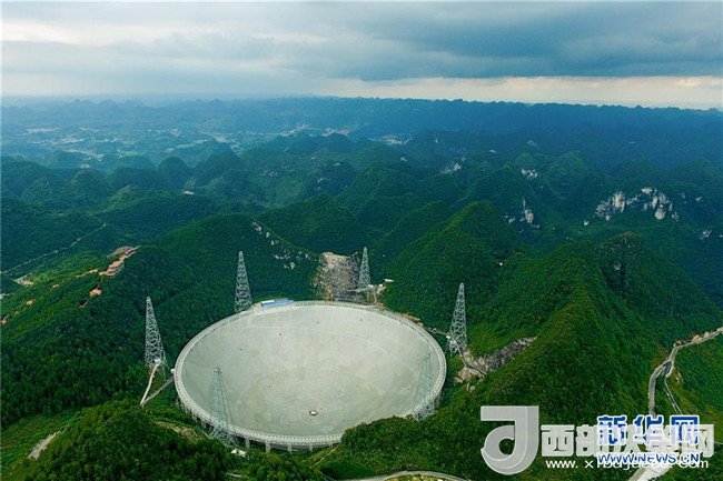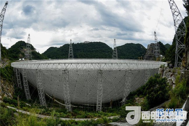 這是群山之中的500米口徑球面射電望遠(yuǎn)鏡(FAST)全景(2017年8月9日攝)。