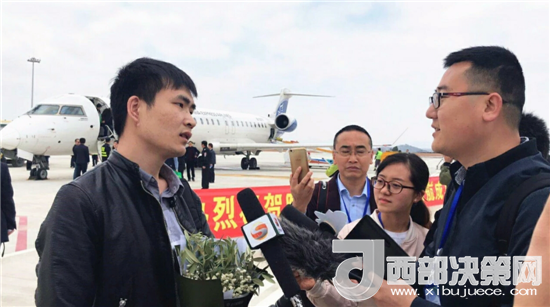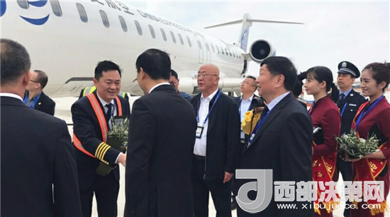 西部決策網(wǎng)——西部大開發(fā)訊(帥華鋒 通訊員 馬存福 馬智泉)2018年3月25日上午11點20分甘肅隴南成縣機場迎來首航!一架從重慶飛來的華夏航空龐巴迪CRJ900客機穿越云層,呼嘯著俯沖而下,平穩(wěn)降落在隴南成縣機場,這標(biāo)志著隴南成縣機場正式通航。剎那間,機場一片歡呼聲和鼓樂聲,隴南全市人民多年的飛天夢想終于實現(xiàn)了!
