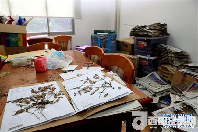 在復旦大學鐘揚的工作間里,大量報紙中夾存著他和團隊從各地采集的待整理植物標本(2018年1月24日攝)。新華社記者 劉穎 攝