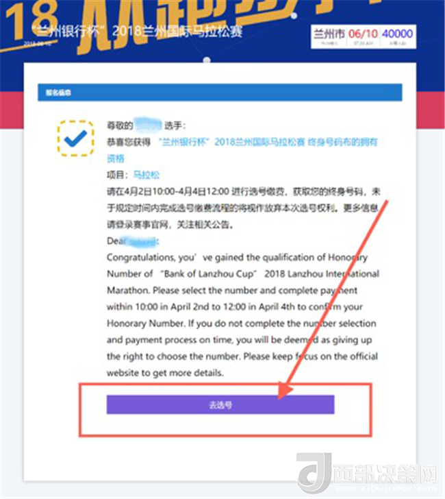 需要特別提請(qǐng)的是,原有終身號(hào)碼擁有者一經(jīng)選取將直接更換原有終身號(hào)碼并一直沿用至每場(chǎng)蘭州國(guó)際馬拉松賽,若勾選“服從組委會(huì)安排”或不進(jìn)行選號(hào)環(huán)節(jié),將自動(dòng)沿用跑者原有終身號(hào)碼。
