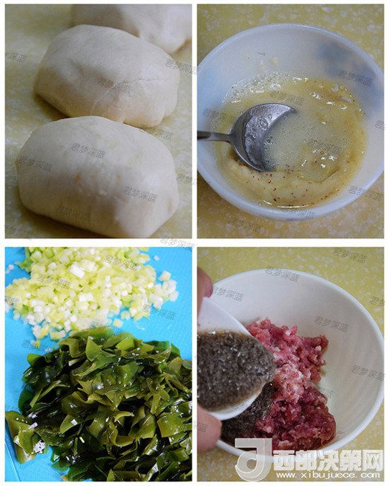 這款餅純屬亂搭型的,原來(lái)只是想自己練練手藝做個(gè)爬蝦醬味道的肉末餅,打開(kāi)冰箱的時(shí)候發(fā)現(xiàn)有之前剩的新鮮裙帶菜,于是靈機(jī)一想,把裙帶菜也加入餅中,這樣讓這款餅更健康。