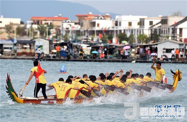 選手參加在萬寧和樂鎮(zhèn)港北港舉行的2016中華龍舟大賽萬寧站200米直道賽決賽(2016年3月10日攝)。新華社記者 楊冠宇 攝