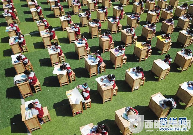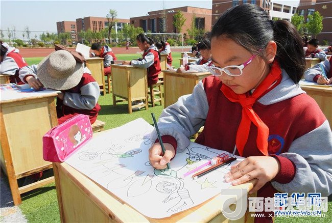 4月19日,安徽省合肥市蜀山區(qū)井崗鎮(zhèn)新城小學(xué)學(xué)生參加“善待地球,童繪藍天——我與地球的故事”繪畫活動。新華社發(fā)(葛宜年 攝)