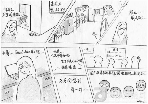 李雍告訴記者,家居與工業(yè)設(shè)計(jì)學(xué)院的學(xué)生都有一定美術(shù)功底,畫(huà)檢討剛好能讓學(xué)生在反省的同時(shí)鍛煉自己的專(zhuān)業(yè)技能,加上漫畫(huà)的表現(xiàn)形式輕松活潑,更符合“95后”的表達(dá)風(fēng)格。“學(xué)生們的漫畫(huà)體檢討融合了他們的創(chuàng)作情感,文字無(wú)法完整表達(dá)的心理活動(dòng),都可以通過(guò)這種圖文并茂的形式生動(dòng)地呈現(xiàn)出來(lái),而他們會(huì)把這種情感潛移默化嫁接到檢討的屬性里去,從而提升檢討教育的實(shí)效性。”