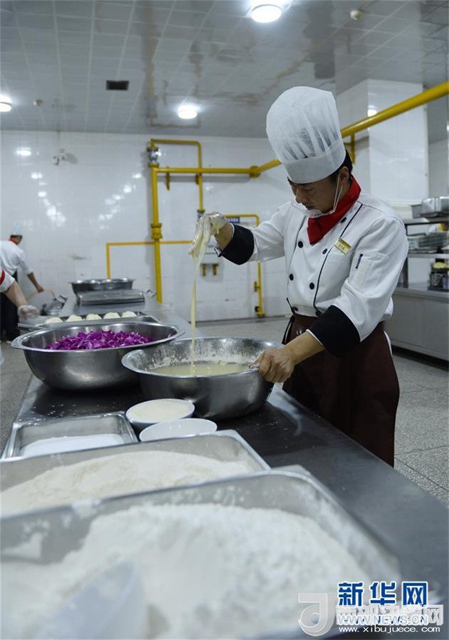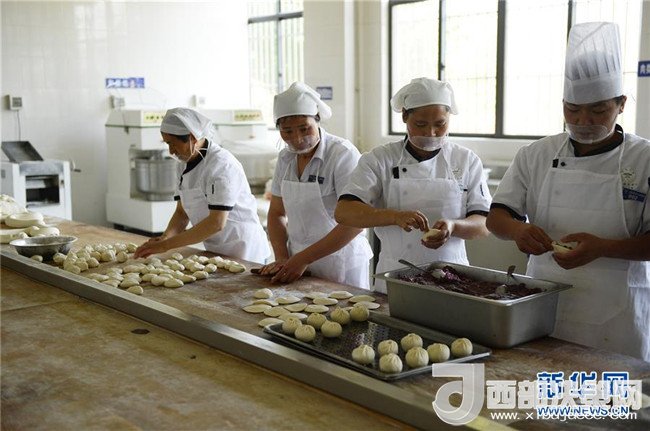 4月25日,廚師們在云南大學(xué)呈貢校區(qū)食堂制作玫瑰包。