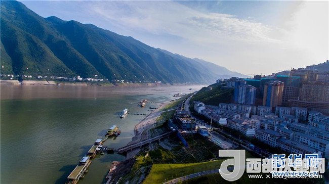 2017年6月30日無人機航拍重慶巫山縣縣城一景。