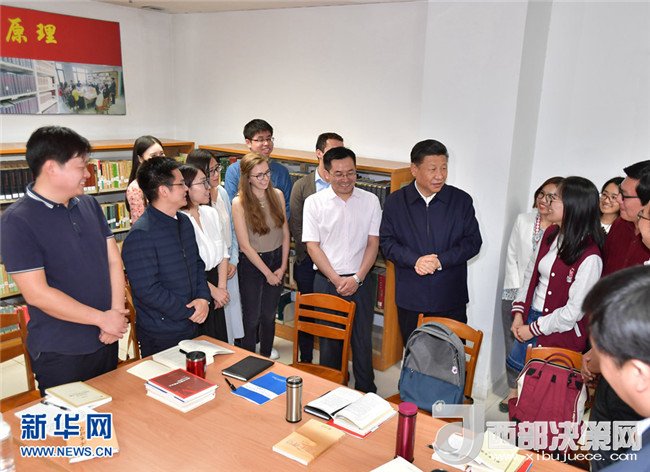 隨后,習(xí)近平走進(jìn)國際馬克思主義文獻(xiàn)中心,察看館藏馬克思主義典籍,詢問“馬藏工程”進(jìn)展情況,稱贊他們的工作非常有意義。閱覽室里,一些中外學(xué)生正在就“解讀新時(shí)代”進(jìn)行座談交流。習(xí)近平走到他們中間,認(rèn)真傾聽討論,并同大家互動(dòng)交流??倳泦柎蠹覟槭裁催x擇馬克思主義專業(yè)、學(xué)習(xí)這個(gè)專業(yè)有什么體會(huì),同學(xué)們興奮地一一回答。同學(xué)們問總書記“您是一個(gè)堅(jiān)定的馬克思主義者,您學(xué)習(xí)馬克思主義有什么好的方法”,總書記熱情同大家分享了自己的學(xué)習(xí)經(jīng)驗(yàn)。他對(duì)在場(chǎng)的外國留學(xué)生說,要了解中國,就要了解中國的歷史、文化、人文思想和發(fā)展階段,特別是要了解當(dāng)代中國的馬克思主義。習(xí)近平強(qiáng)調(diào),北京大學(xué)是中國最早傳播和研究馬克思主義的地方,為馬克思主義在中國的傳播和中國共產(chǎn)黨的成立作出了重要貢獻(xiàn)。今年是馬克思誕辰200周年,也是《共產(chǎn)黨宣言》誕生170周年。我們對(duì)馬克思和《共產(chǎn)黨宣言》的最好紀(jì)念,就是把黨的十九大精神和新時(shí)代中國特色社會(huì)主義思想這一當(dāng)代中國馬克思主義研究好、宣傳好、貫徹好。他勉勵(lì)大家緊密聯(lián)系世情國情黨情的變化,認(rèn)真開展新時(shí)代中國特色社會(huì)主義思想研究,拿出更多有分量有說服力的研究成果。