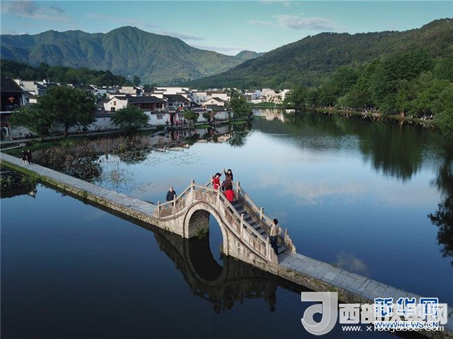 這是5月8日無人機(jī)拍攝的安徽黟縣宏村南湖景區(qū)。新華社記者張端 攝