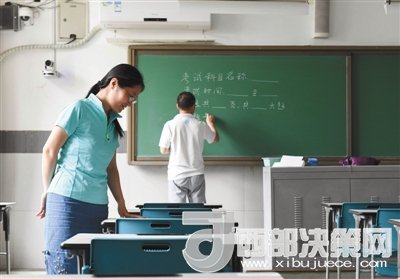 北京101中學(xué)是海淀區(qū)考場(chǎng)最多的一個(gè)考點(diǎn),共有文科考場(chǎng)10個(gè)、理科考場(chǎng)20個(gè)、兩間備用考場(chǎng)。各位監(jiān)考老師在結(jié)束上午的考前培訓(xùn)后來(lái)到了各自負(fù)責(zé)的考場(chǎng),對(duì)布置情況進(jìn)行最后的檢查。