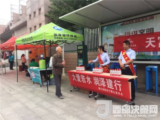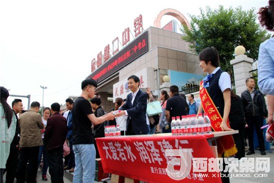 西部決策網(wǎng)——西部大開發(fā)訊(帥華鋒 通訊員 齊彩云 嵇祥)6月7日,建行慶陽分行組織員工,在這個(gè)特別的日子開展了“大愛若水,潤澤建行”助力高考學(xué)子活動(dòng),在高考期間,考生及家長可在我行設(shè)立的補(bǔ)水站處憑準(zhǔn)考證領(lǐng)取1瓶礦泉水,為寒窗苦讀的學(xué)子與焦急等待的家長送去了關(guān)懷。