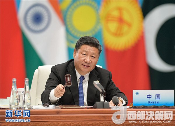 習近平隨后發(fā)表題為《弘揚“上海精神” 構(gòu)建命運共同體》的重要講話。習近平指出,上海合作組織成立17年來,走過了不平凡的發(fā)展歷程,取得了重大成就。我們以《上海合作組織憲章》、《上海合作組織成員國長期睦鄰友好合作條約》為遵循,構(gòu)建起不結(jié)盟、不對抗、不針對第三方的建設性伙伴關系。這是國際關系理論和實踐的重大創(chuàng)新,開創(chuàng)了區(qū)域合作新模式,為地區(qū)和平與發(fā)展作出了新貢獻。今天,上海合作組織是世界上幅員最廣、人口最多的綜合性區(qū)域合作組織,國際影響力不斷提升,已經(jīng)成為促進世界和平與發(fā)展、維護國際公平正義不可忽視的重要力量。
