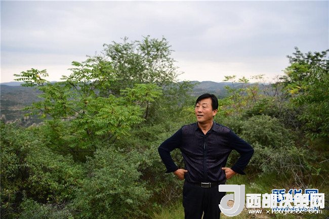 閆志雄在陜西延安市吳起縣南溝村的山坡上遠(yuǎn)眺一片綠色的山林(2017年9月13日攝)。閆志雄帶領(lǐng)村民植樹造林,百折不撓,成為這個(gè)“退耕還林第一縣”的“綠色革命”先鋒。新華社記者 邵瑞 攝