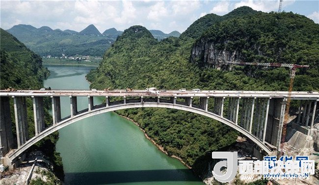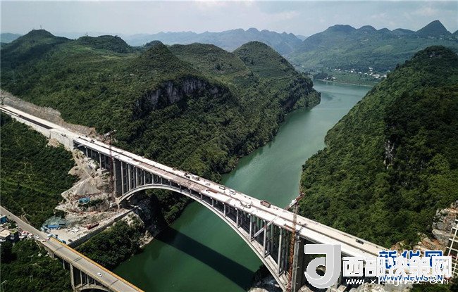 貴州織普高速公路控制性工程——夜郎湖特大橋日前實現全線貫通,預計本月底可全面建成。該橋由貴州橋梁建設集團于2016年5月開始施工,全長391.4米,拱圈凈跨徑210米。據了解,織普高速全長約52公里,建成后由織金縣到普定縣的車程可從原來的2.5小時縮短到35分鐘,將大幅提高通行效率,進一步推動沿線經濟發(fā)展。新華社記者 陶亮 攝