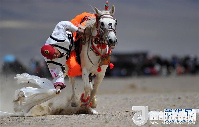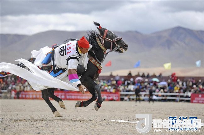 當日,西藏阿里地區(qū)在獅泉河鎮(zhèn)舉行賽馬競技大賽,比賽項目有騎馬拾哈達、撿茶磚、騎馬射箭、馬術(shù)表演等,共有150名農(nóng)牧民選手參加比賽,吸引了2萬余名觀眾前來觀看。新華社記者張汝鋒攝