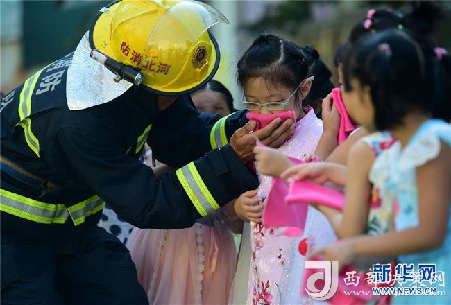 8月27日,滄州市公安消防支隊(duì)新華區(qū)建設(shè)大街中隊(duì)的消防戰(zhàn)士為幼兒園的孩子講解火災(zāi)逃生知識(shí)。