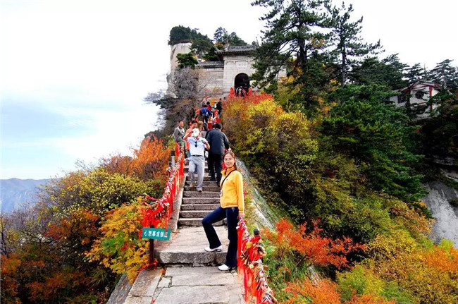 魏晉南北朝時(shí),還沒有通向華山峰頂?shù)牡缆?。直到唐朝,隨著道教興盛,道徒開始居山建觀逐漸在北坡沿溪谷而上開鑿了一條險(xiǎn)道,形成了"自古華山一條路"。