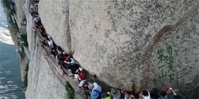 具有700多年歷史的長空棧道,在華山南峰東側(cè)山腰的萬仞絕壁上鑿出來的幾個踏腳之處,鑲嵌石釘搭木椽搭建了一個百余米懸空的棧道,讓人望而卻步,如果你有恐高癥,僅僅看一眼都會讓你驚恐萬分。2013年,著名旅游網(wǎng)站“Smarter Travel”盤點全球最恐怖懸崖步道,將華山長空棧道列為全球十大最恐怖的懸崖步道之一。