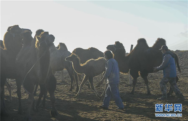 合作社工作人員在駝場里忙碌(9月14日攝)。 新華社記者 趙戈 攝