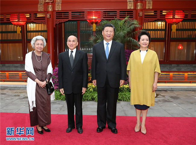 習(xí)近平主席夫婦看望柬埔寨國王西哈莫尼和太后莫尼列