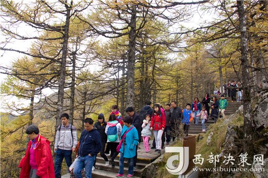 國慶假期,太白山海拔3511米的天圓地方是游客游覽人氣最旺的景點(diǎn),站在這里不僅讓游客能充分領(lǐng)略“一手牽長江,一手牽黃河”的獨(dú)特魅力,還能欣賞輪番上演的霧凇、紅葉、秋雪、云海、日出等美景,讓游客大飽眼福。國慶當(dāng)天,天圓地方景點(diǎn)出現(xiàn)晶瑩剔透的霧凇景觀,為太白山增添了瑰麗的景致。碧云天,黃葉地,秋色連波,波上寒煙翠。太白山的秋,是詩意和多彩的結(jié)合。站在天圓地方景點(diǎn),放眼望去,壯觀的云海翻騰,金色的山峰若隱若現(xiàn),美不勝收。從這里沿著步道至上板寺,這條線路是太白山最美的賞秋地點(diǎn),被譽(yù)為高山區(qū)的天宮盆景園。行走其間,兩邊的太白紅杉枝條搖曳,姿容秀美,栩栩如生的鳳凰松是紅杉林里最靚麗的風(fēng)景,詼諧生動(dòng)的蛇松引的游人駐足欣賞。10月6日,天圓地方景點(diǎn)飄起了雪花,給秋意正濃的太白山又增添了些許的靚麗,讓前來太白山賞秋的游客驚嘆不已。
