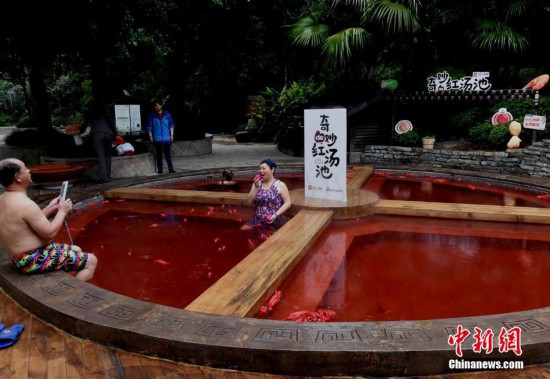 重慶現(xiàn)巨型“麻辣火鍋”溫泉