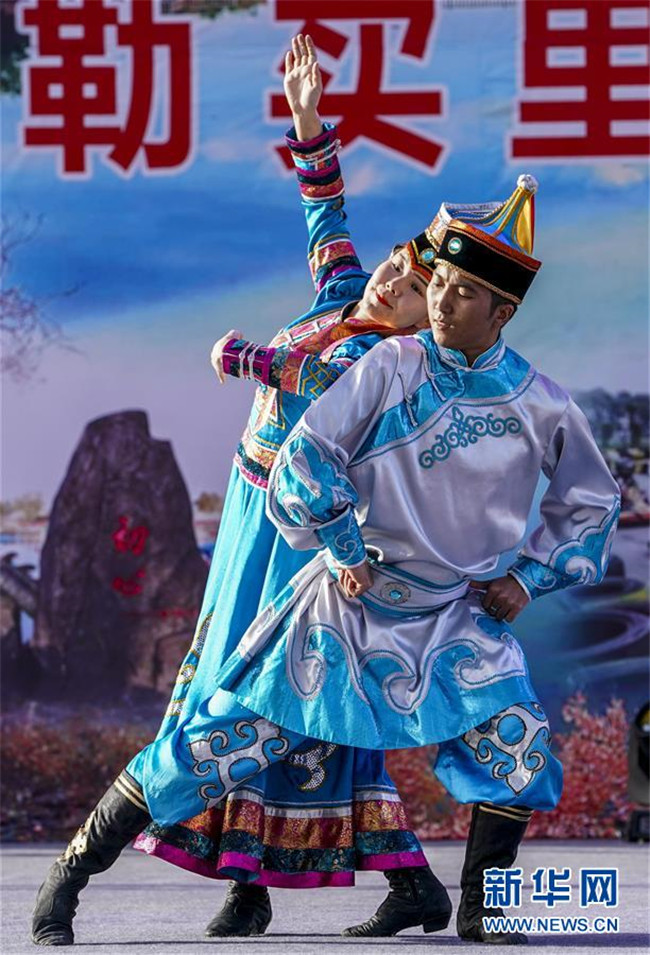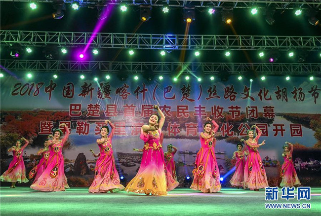 10月22日,演員在果勒買里村為游客和村民表演節(jié)目。 新疆巴楚縣阿納庫勒鄉(xiāng)果勒買里村緊鄰巴楚縣城,區(qū)位優(yōu)勢(shì)明顯。近年來,新疆維吾爾自治區(qū)體育局“訪民情”“惠民生”“聚民心”駐村工作隊(duì)幫助村里完善基礎(chǔ)設(shè)施和改善村容村貌,借助節(jié)慶活動(dòng)大力發(fā)展鄉(xiāng)村旅游,吸引周邊及外地游客前來觀光休閑,既豐富了村民的文化生活,又為村民增收致富拓寬了門路。 新華社記者 胡虎虎 攝